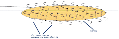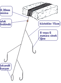 edilebilir yada yüzeyde av yapılacaksa en alta kanca en üste şamandıra
